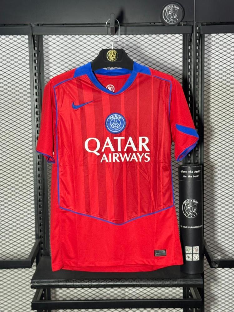 يأتي تيشيرت باريس سان جيرمان الاحتياطي 2025 2026 باللون الأحمر ليعكس القوة و الأناقة في آن واحد، فهو الخيار الأمثل لعشاق النادي الفرنسي الذين يبحثون عن التميز و الهوية الباريسية في كل تفاصيل ملابسهم.